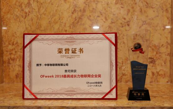 中移物联网有限公司荣获维科杯·OFweek2018最具成长力企业奖